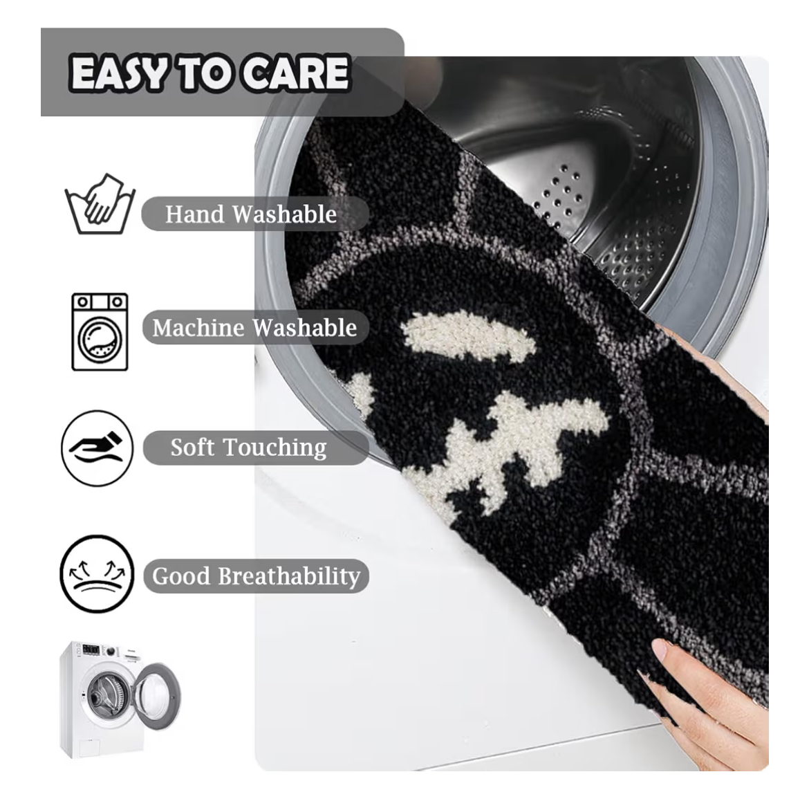 Measuring 2FT, this tufted bath mat is made with 0.79-inch low pile plush for luxurious softness underfoot. The TPR non-slip rubber backing ensures it stays firmly in place—even after repeated washes. It’s also machine washable, vacuum-friendly, and quick-drying, making it as practical as it is eye-catching.